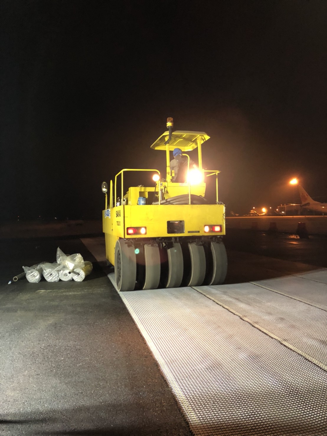 Installation the product geogrid at Ubon Ratchathani International Airport