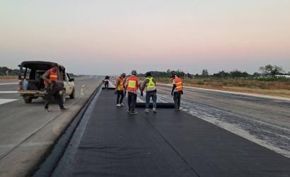 Installation the product geogrid at Lampang Airport Integrity Service...